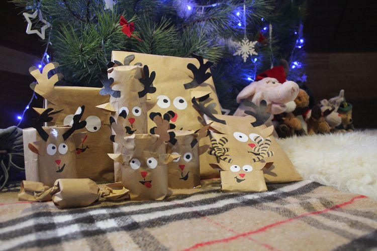 Оформить свой подарок можно оригинально - например, сделать конвертики с мордашками оленей.