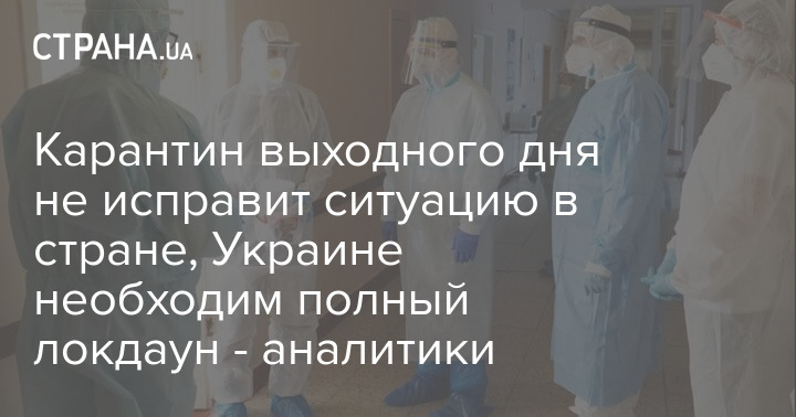 Руководитель Центра экономики здравоохранения Киевской школы экономики (KSE), экс-замминистра здравоохранения Павел Ковтонюк заявил, что Украине для изменения ситуации с распространением Covid-19 следует немедленно ввести полный локдаун сроком на месяц, так как карантина выходного дня недостаточно для стабилизации ситуации в стране.