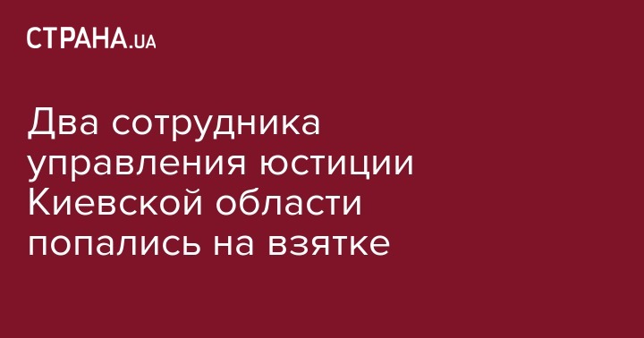 В Киеве правоохранители задержали двоих сотрудников Главного территориального управления юстиции в Киевской области, которые попались на взятке в 100 000 гривен, сообщает пресс-служба прокуратуры Киева в Facebook.