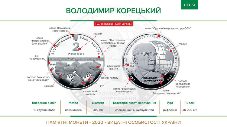 С 10 декабря Национальный банк Украины введет новую памятную монету "Владимир Корецкий".