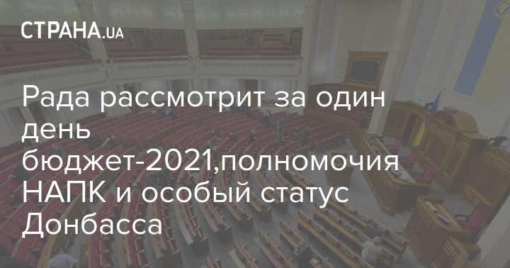 Верховная Рада рассмотрит во втором чтении законопроект о бюджете на 2021 год на заседании во вторник, 15 декабря. Также парламентарии возьмутся за продление особого статуса Донбасса и законопроект о возвращении полномочий Национальному агентству по предотвращению коррупции (НАПК).