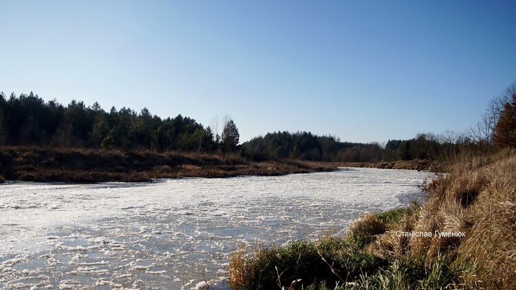 В сети появились первые фото замерзшей реки Уж, которая простирается от Припяти до Коростеня. Однако сотрудники Чернобыльского заповедника не уверены, надолго ли это.