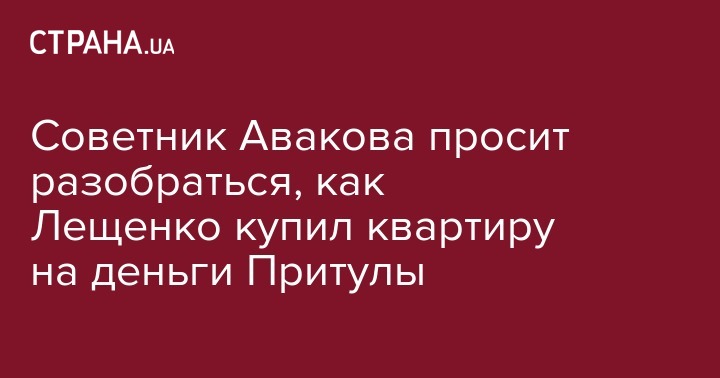 Советник Авакова просит разобраться, как Лещенко купил квартиру на деньги Притулы