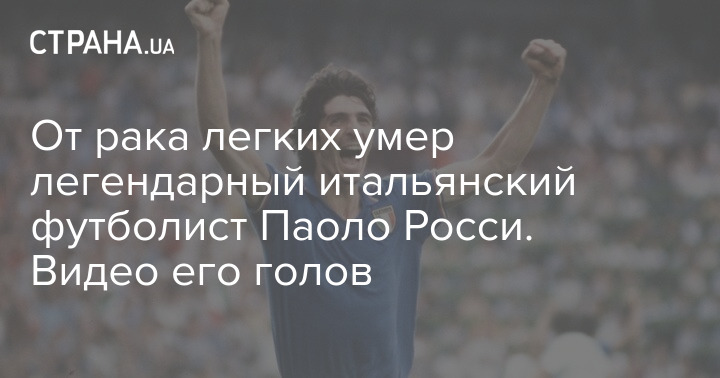 В возрасте 64 лет скончался легендарный итальянский футболист, чемпион мира т обладатель "Золотого мяча" Паоло Росси. Смерть наступила в результате тяжелой болезни - экс-футболист страдал раком легких. Об этом сообщается на сайте УЕФА.