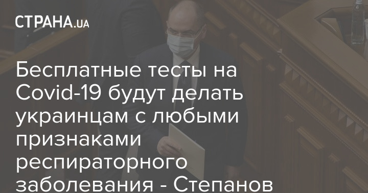 Бесплатные тесты на Covid-19 будут делать украинцам с любыми признаками респираторного заболевания - Степанов