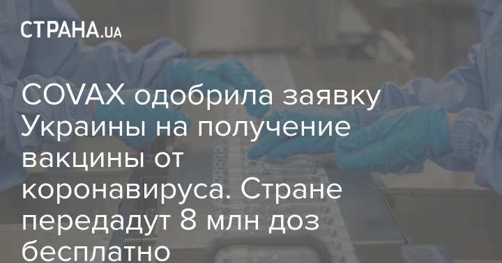 Глобальный механизм по обеспечению доступности вакцин против коронавируса COVAX одобрил заявку Украины на получение восьми миллионов доз прививок от covid-19.