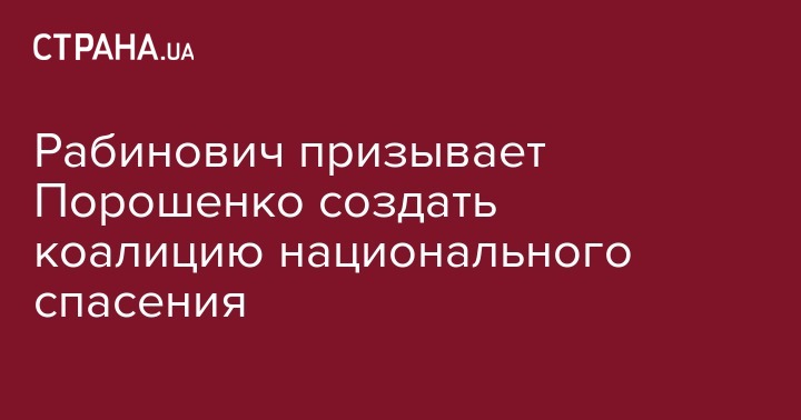 "Я предлагаю немедленно создать в Верховной Раде коалицию национального спасения - не по партийному принципу, не по принципу личной преданности вождям. В основу новой коалиции необходимо взять только один принцип: кто из депутатов ВР, забыв о партийных амбициях и обидах вчерашнего дня, готов немедленно отстраивать Украину, спасать экономику", - сообщается в тексте письма Рабиновича, которое опубликованного на его странице в Фейсбуке.
