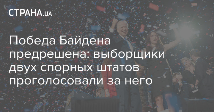 На голосовании коллегии выборщиков 14 декабря выборщики двух спорных штатов, Пенсильвании (22 выборщика) и Джорджии (16), отдали свои голоса за демократа Джо Байдена.