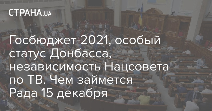 Во вторник, 15 декабря, Верховная Рада Украины соберется на очередное заседание. В планах нардепов - рассмотреть проект Государственного бюджета на 2021 год