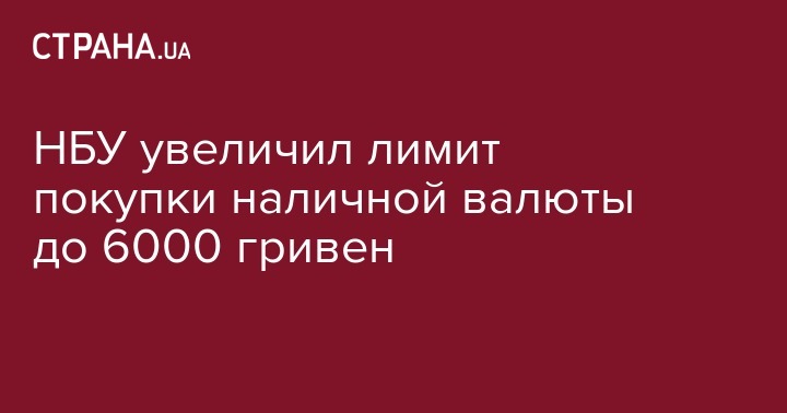 Кроме того, НБУ увеличивает лимит продажи наличной валюты с 3 тыс. грн до 6 тыс. грн. (чуть больше 200 долларов по нынешнему курсу).