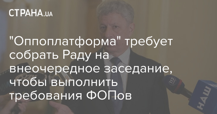 "Оппоплатформа" требует собрать Раду на внеочередное заседание, чтобы выполнить требования ФОПов