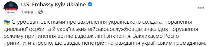 Интересно, что пока Украина фиксирует обострение как рядовой процесс, по его поводу внезапно выступило посольство США. Сегодня оно призвало Россию "прекратить агрессию" и напомнило про двух раненых украинских солдат и одного гражданского.