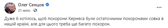"Очень хотелось бы, чтобы похороны Кернеса были окончательными похоронами совка в нашей стране, но для этого нужно еще много похорон", - говорится в сообщении.