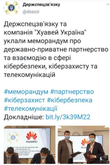 Еще в октябре Госслужба спецсвязи и защиты информации подписала меморандум с "Хуавей Украина" - о сотрудничестве в сферах кибербезопасности, киберзащиты и телекоммуникаций.