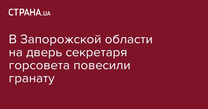 В Токмаке Запорожской области на двери квартиры секретаря Токмакского городского совета неизвестные закрепили гранату. Об этом сообщает ГУ Нацполиции Запорожской области.