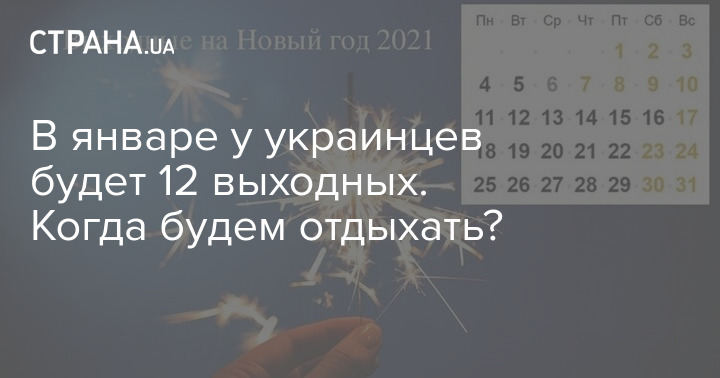 В период Нового года и Рождества у граждан Украины будет семь выходных дней, поскольку они имеют статус государственных праздников. Всего же в январе страна сможет отдыхать 12 дней.