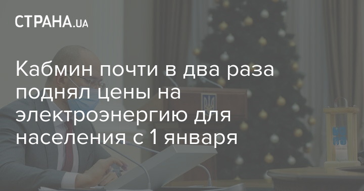 На внеочередном заседании 28 декабря правительство Украины установило с 1 января тариф на электроэнергию для бытовых потребителей в размере 1,68 грн/кВт-ч (сейчас действует тариф 0,90 грн/кВт-ч на первые 100 кВт-ч). Такой тариф будет действовать до 31 марта 2021 года.