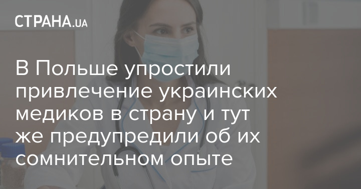В частности, иностранные врачи в Польше смогут подтвердить дипломы по упрощенной процедуре: не требуется нострификация, прохождение соответствующего последипломного стажа и сдача врачебного экзамена.