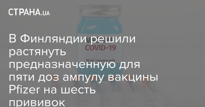 Финский Институт здравоохранения и социального благополучия (THL) при министерстве здравоохранения и социального благополучия внес изменения в инструкцию по дозировке вакцины от коронавируса производства Pfizer и Biontech. Орган решил, что каждую ампулу, рассчитанную на пять доз, можно растягивать на шесть уколов.