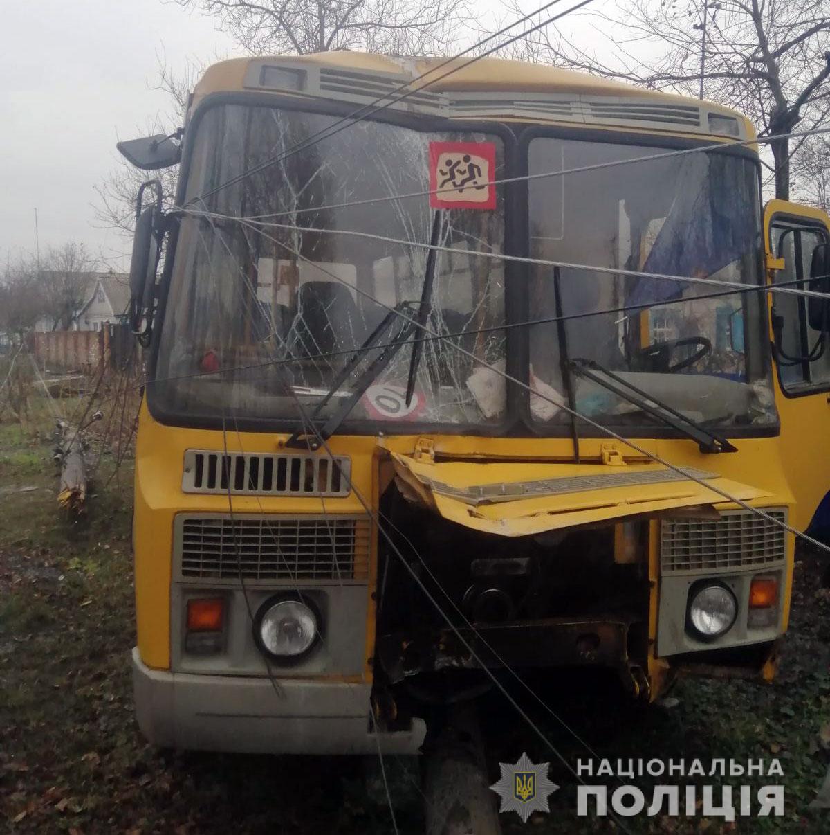 Школьный автобус врезался в столб, фото: Нацполиция