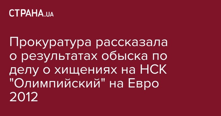 Как сообщала "Страна", столичная прокуратура 9 сентября проводит обыски в рамках расследования дела о хищении 9 млн грн при реконструкции Национального спортивного комплекса "Олимпийский". Речь идет о фирмах в Киеве и Одессе.