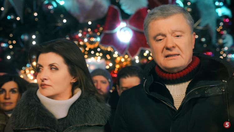 На телеканалах "Прямой" и "5 канал", второй год подряд, показали новогоднее видеообращение экс-президента Украины Петра Порошенко. Новогодний ролик длился около четырех минут. Рядом с лидером "Европейской солидарности" находились его жена, депутат София Федына и волонтер Маруся Зверобой, которых судили за угрозы Зеленскому.