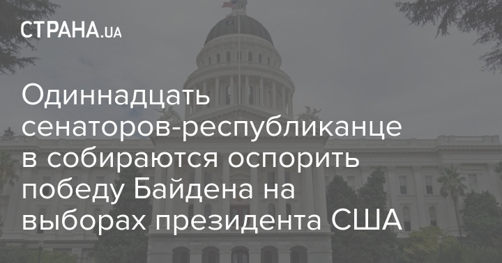 Одиннадцать американских сенаторов, представителей партии республиканцев, собираются оспорить победу демократа Джо Байдена на выборах президента США в день официального утверждения результатов выборов Конгрессом, 6 января.