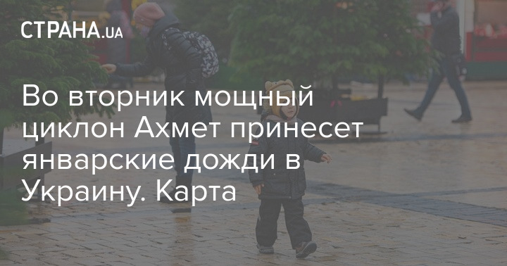 Во вторник мощный циклон Ахмет принесет январские дожди в Украину. Карта