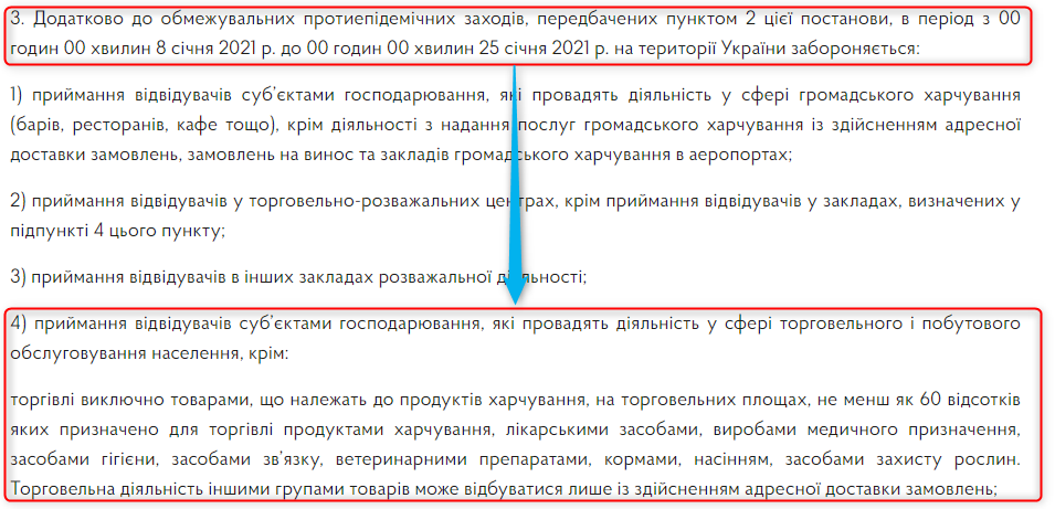 Там приводится перечень товаров, которые можно продавать в супермаркетах и магазинах во время локдауна.