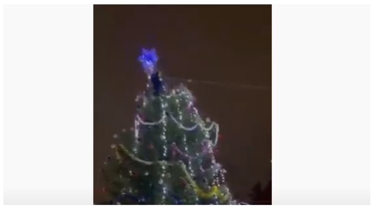Под Ярославлем пьяный россиянин рухнул с городской елки, пытаясь достать с верхушки звезду. Видео