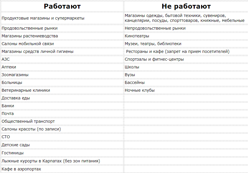 - продукты (то есть, работать будут супермаркеты),