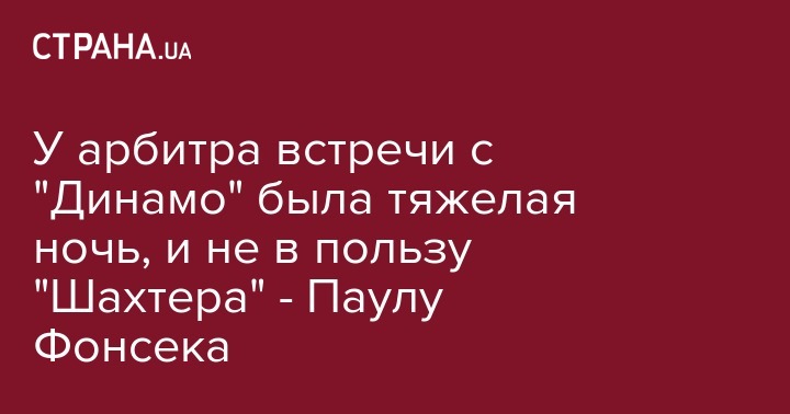 Мы были лучше и провели почти весь матч на половине поля соперника. Сегодня должна была быть победа "Шахтера". Также хочу сказать, что у арбитра, который является одним из лучших в Украине, была очень тяжелая ночь. И далеко не в нашу пользу", - заявил Фонсека.