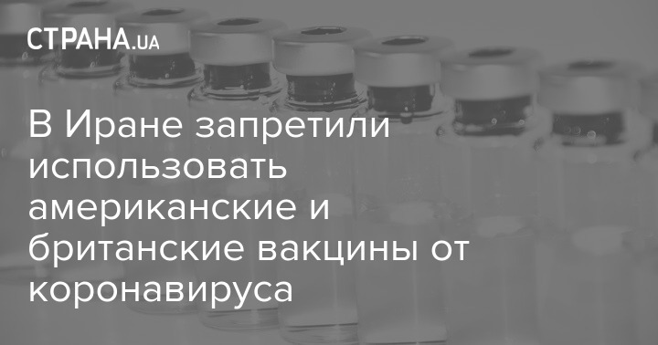 Верховный лидер Ирана Али Хаменеи запретил использовать в стране вакцины от коронавируса из Великобритании (в настоящее время это AstraZeneca - Ред.) и США (сейчас это препарат от Pfizer и BioNTech, а также Moderna - Ред.).