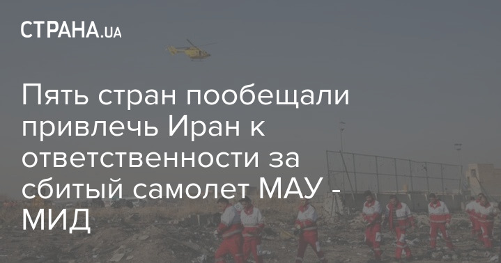 "Мы срочно призываем Иран дать полное и всестороннее объяснение событий и решений, которые привели к этой ужасной авиакатастрофе, включая конкретные действия, для того чтобы это больше никогда не повторилось. Наши страны привлекут Иран к ответственности с целью установления справедливости и обеспечат выплату компенсаций Ираном в полной мере семьям погибших и пострадавшим государствам", - говорится в заявлении.