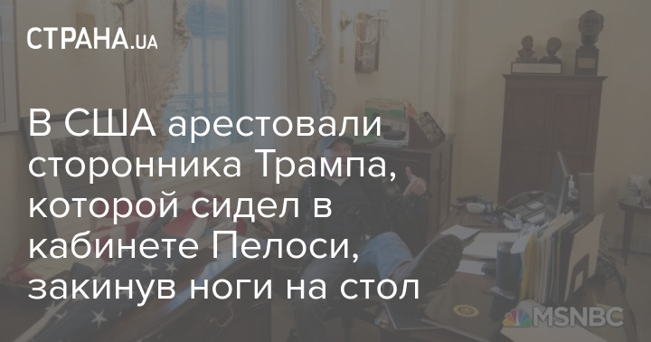 В США арестовали сторонника Трампа, которой сидел в кабинете Пелоси, закинув ноги на стол
