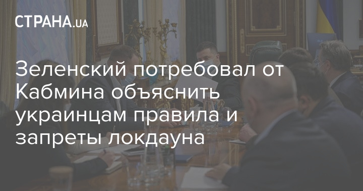 Президент Украины Владимир Зеленский во время совещания с правительством потребовал как можно быстрее разъяснить людям правила и запреты, которые действуют во время локдауна.