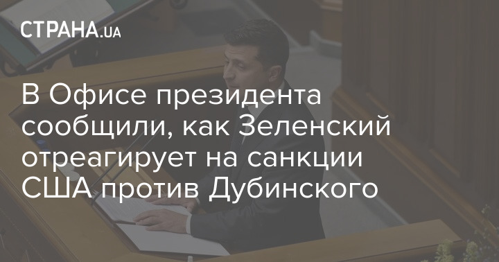 Офис президента Украины и сам глава государства Владимир Зеленский не будут реагировать на санкции введенные США в отношении народного депутата из фракции "Слуга народа" в Верховной Раде Александра Дубинского.