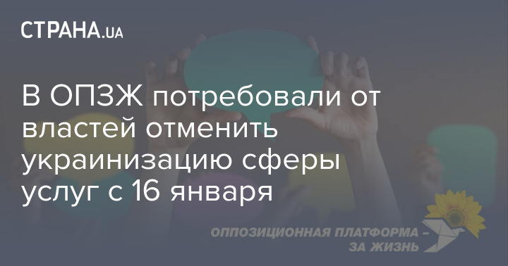 "Оппозиционная платформа - За жизнь" в связи со вступлением в силу с 16 января нормы языкового закона о переходе всей сферы обслуживания на украинский требует от власти отменить ее, поскольку она является дискриминационной.