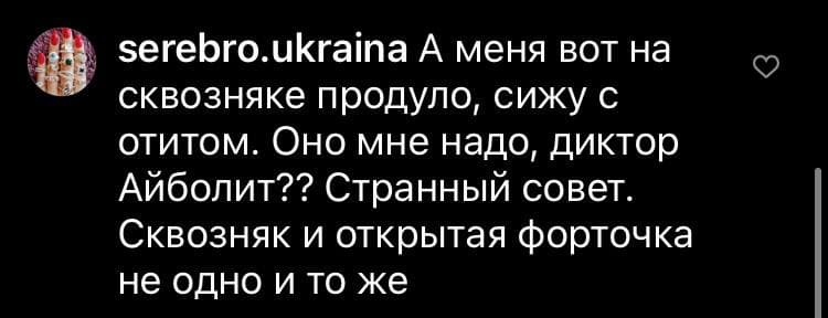 "...странный совет. Сквозняк и открытая форточка не одно и то же", - добавила другая девушка.