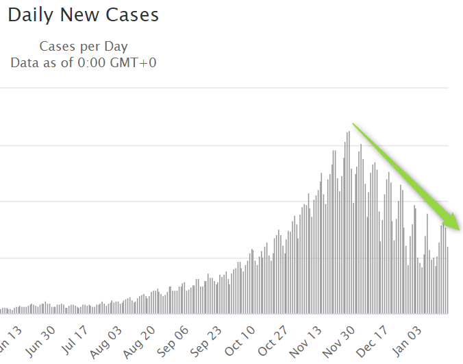 Видимо, это начался рост заболеваемости, который пророчили власти в начале локдауна. Они обещали взрыв после новогодних праздников. Впрочем, хоть с начала народных гуляний прошло уже гораздо более инкубационного периода, взрывом этот прирост назвать нельзя. Заболеваемость все равно держат "на минималках".