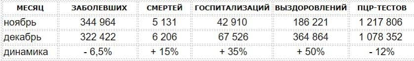 В этом убеждает пример декабря. Несмотря на занижение результатов по заболевшим (что легко сделать, просто уменьшая число тестов), отрицательная динамика выскочила по смертям и госпитализациям. Которые сложнее "откорректировать".