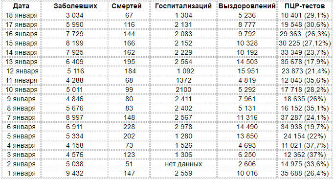 То есть в декабре было слишком явное несоответствие трех показателей - заболеваемости, а с другой стороны смертности с госпитализациями. И теперь ситуацию, видимо, решили "исправить", показывая тотальное улучшение в январе уже по всем параметрам (кроме выздоровлений).