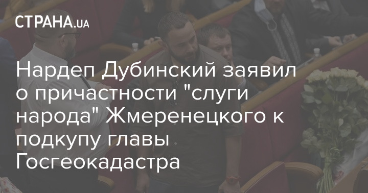 Народный депутат из фракции "Слуга народа" Александр Дубинский, в отношении которого США ввели санкции за "вмешательство в выборы", заявил, что его коллега по фракции Алексей Жмеренецкий причастен к подкупу главы Госгеокадастра Романа Лещенко.