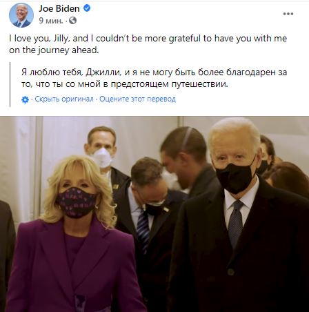 18:24 "Джилли, я люблю тебя. И я безмерно благодарен, что ты будешь рядом со мной во время предстоящего пути", - написал Байден в твиттере.