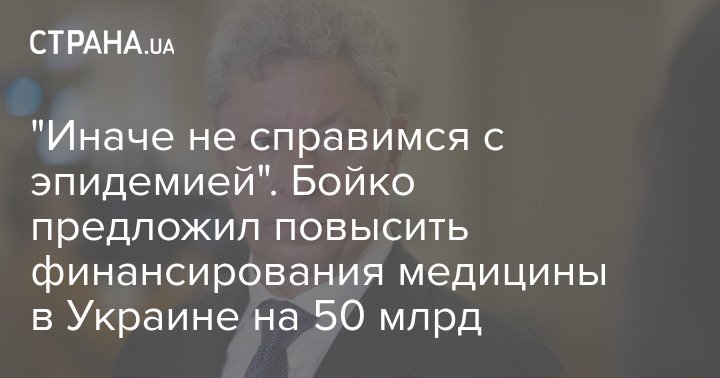 Сопредседатель "Оппозиционная платформа - За жизнь" Юрий Бойко считает, что финансирование медицины в Украине должно составлять минимум 5% от ВВП, иначе страна может не справится с пандемией коронавируса.