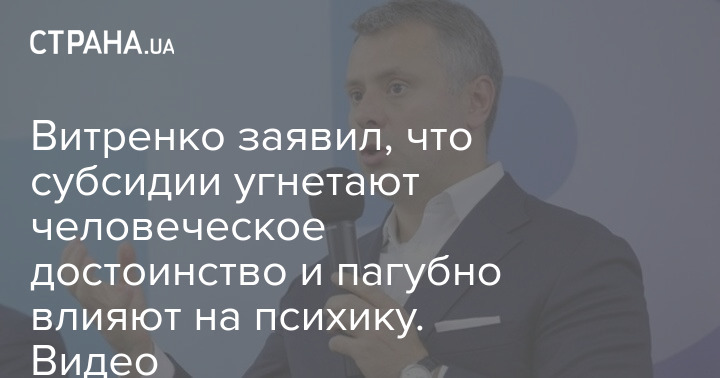 Исполняющий обязанности министра энергетики Юрий Витренко считает, что получение субсидий пагубно влияет на человеческую психику, так как это заставляет людей чувствовать себя бедными.