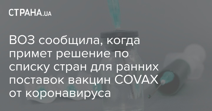ВОЗ сообщила, когда примет решение по списку стран для ранних поставок вакцин COVAX от коронавируса