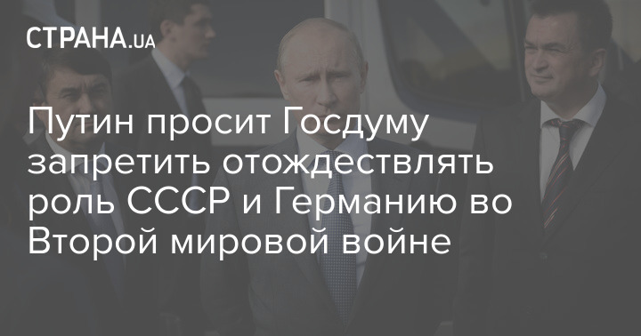 Президент Российской Федерации Владимир Путин в понедельник направил Госдуме официальную рекомендацию принять закон, запрещающий публично заявлять о равной вине СССР и нацистской Германии в развязывании Второй мировой войны.