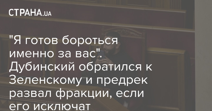 "Я готов бороться именно за вас". Дубинский обратился к Зеленскому и предрек развал фракции, если его исключат