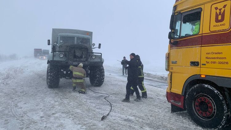Сотни грузовиков застряли в Ровенской области из-за непогоды. Фото: ГСЧС